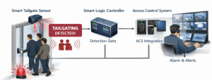 ensuring that only one authorized individual enters per access event. The system also distinguishes humans from objects such as bags, carts, and equipment, while filtering out doors, reflections, and background motion to prevent false alarms. When abnormal or unauthorized movement is detected, the Smart Logic Controller immediately triggers alerts and enforcement actionsthrough the Access Control System and Security Control Room.